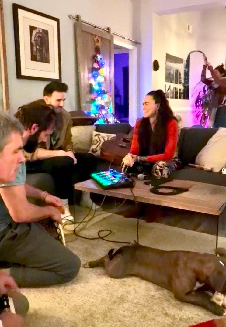 Back to Rumi’s poem about love. On New Year’s Day, I went to a tavern of friendship with two dear friends, Genesis and Martin and two new friends. There, music was on tap and a looper (if there’s a more technical word, I can’t find it). I’m a spazz when it comes to music, but Rumi’s love poem to oneness was looping in my mind. I asked to read it.